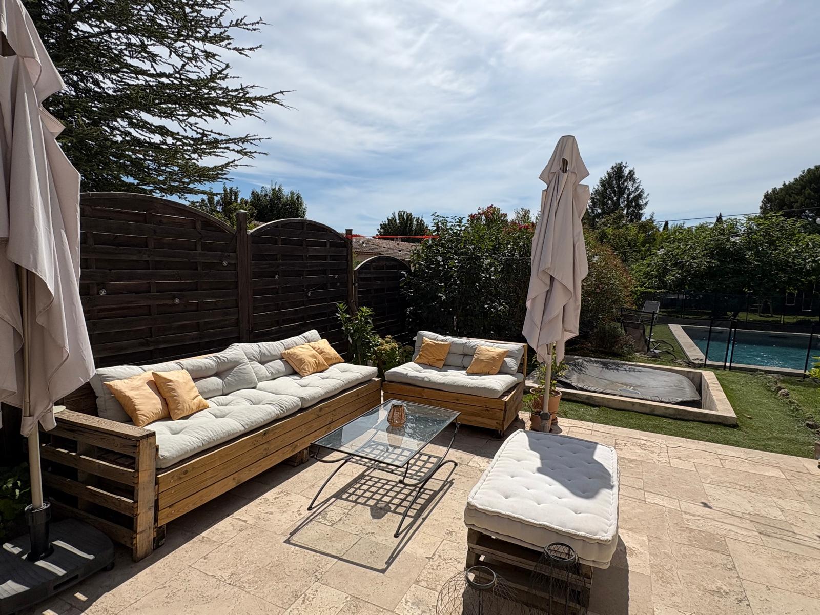 À l’extérieur, vous profiterez d’un jardin entièrement indépendant avec une grande terrasse ensoleillée, ainsi qu’une terrasse couverte équipée d’un four à pizza, d’une plancha et d’un barbecue, parfaits pour vos repas en plein air. La piscine privée (dimension 7x4m), sécurisée par une barrière amovible, est idéale pour les familles avec enfants.